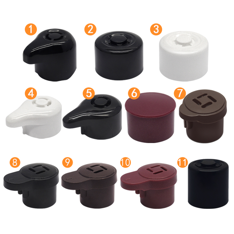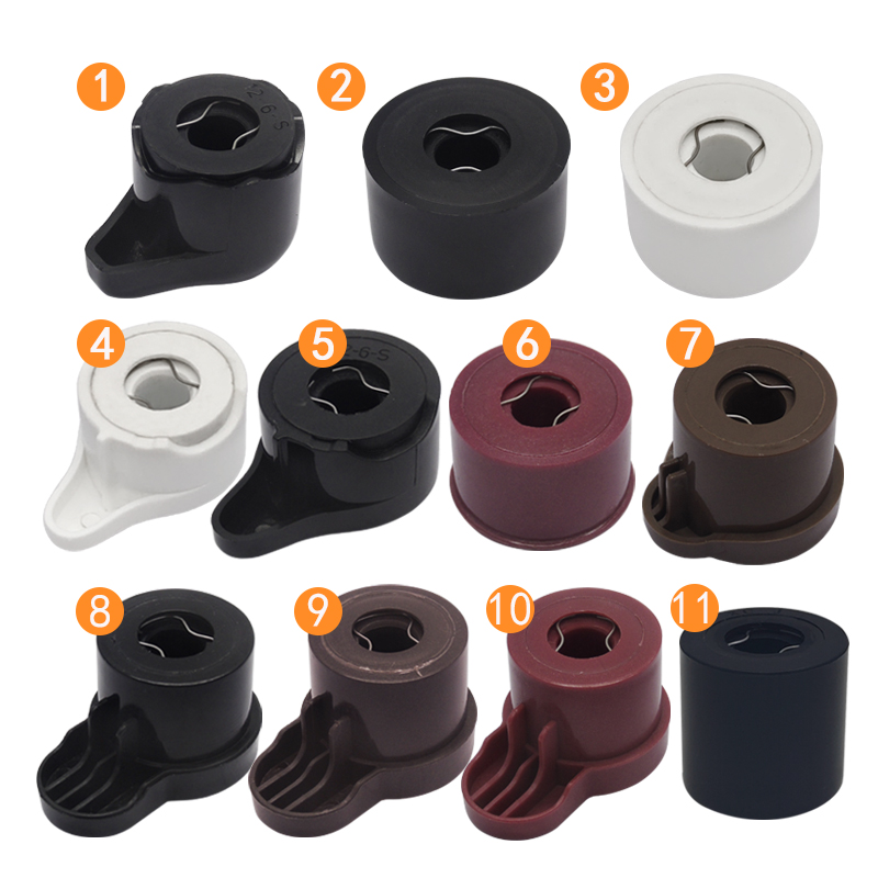 1 3-hole black 2 chunky black 3 chunky white 4 4-hole white 5 4-hole black 6 big round red 7 small cap-brown 8 big cap-black 9