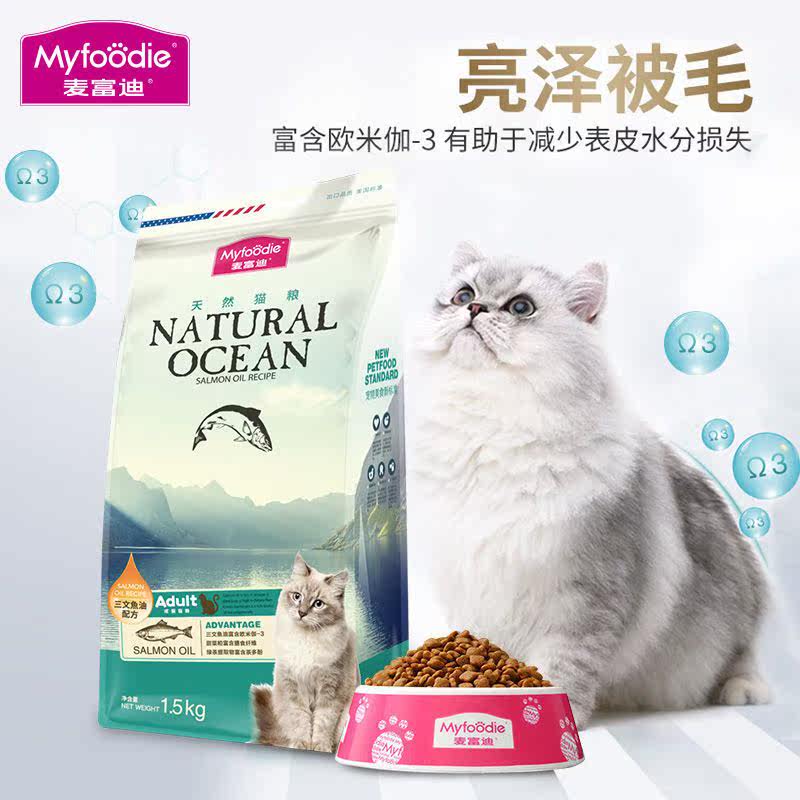 McFundy salmon fish oil to be cat cat food 1 5kg English short blue cat special add fat hair mugmian main food 3 kilos