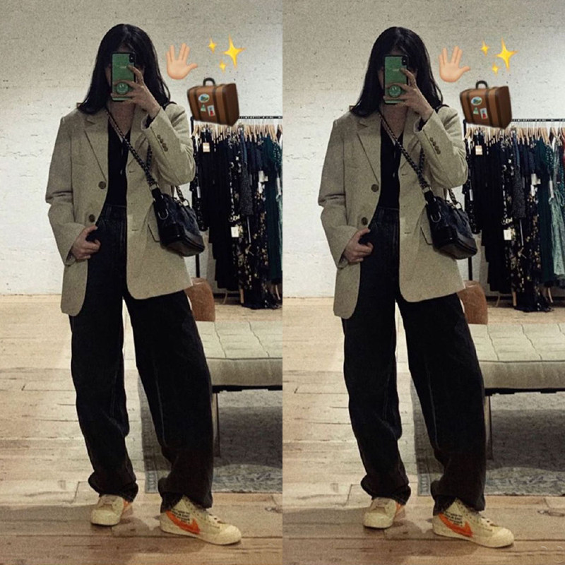 2022 autumn Korean version of Ouyang Nana star same style chic loose lazy style casual internet celebrity small suit jacket women