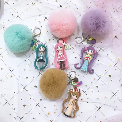 ins pink girl heart cartoon beautiful girl hair ball car keychain plush doll creative gift bag hanging decoration