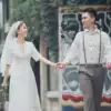 Medium sleeve simple light wedding dress satin 2020 spring new large size loose French vintage wedding dress female long version