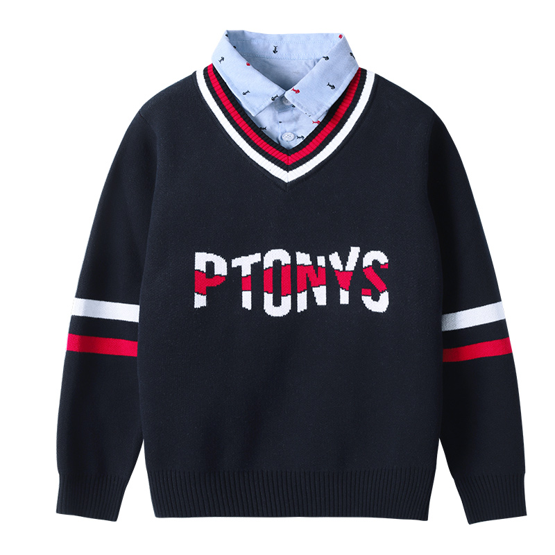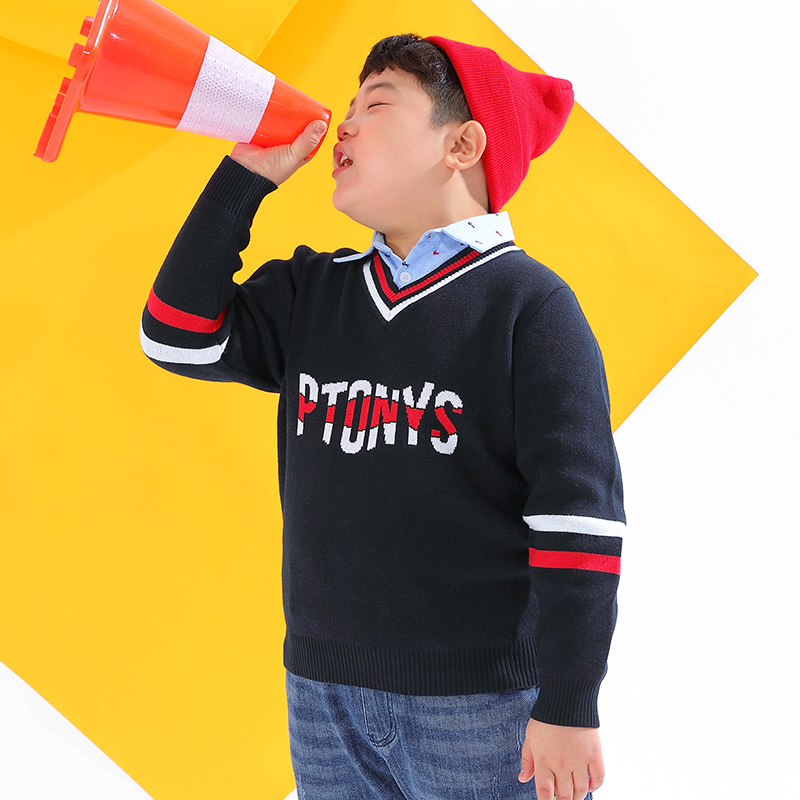 Pig Tony fat boy sweater spring thin section loose large size stand-up collar fake two-piece sweater in the big child fat