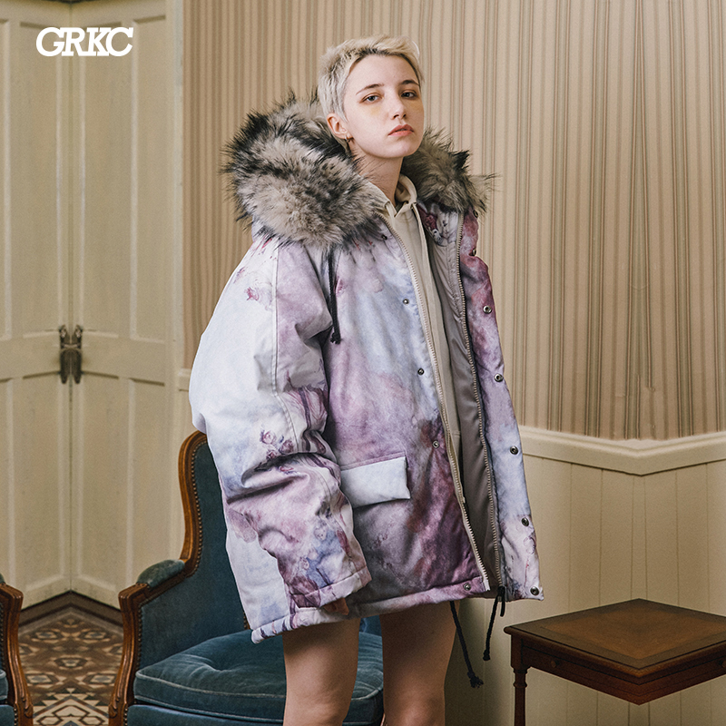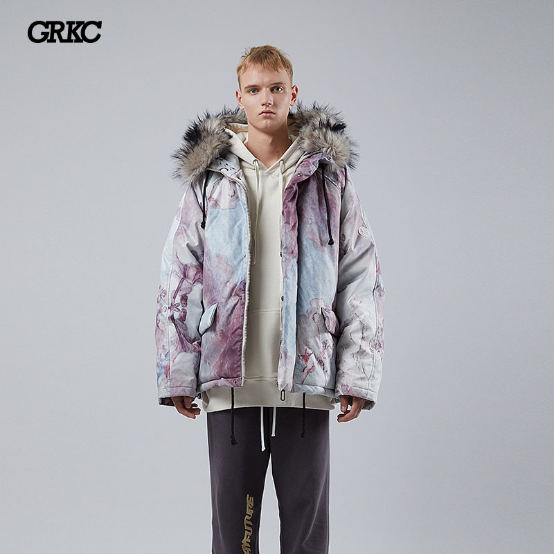 GRKC China angel oil painting thickened cotton clothes National tide brand hip hop couple loose cotton clothes Men's and women's fashion bread clothes