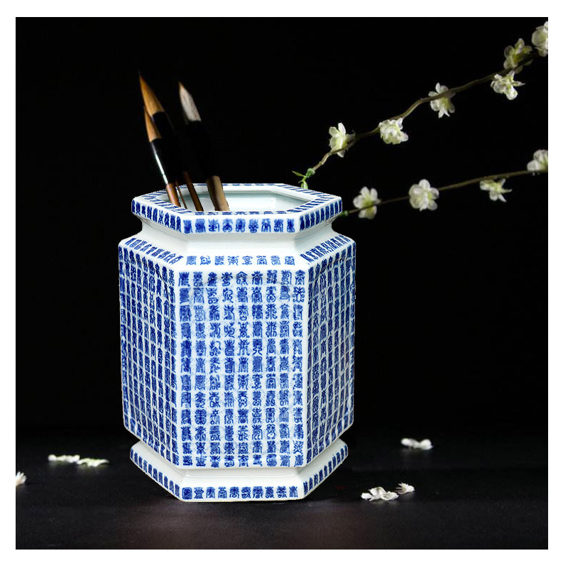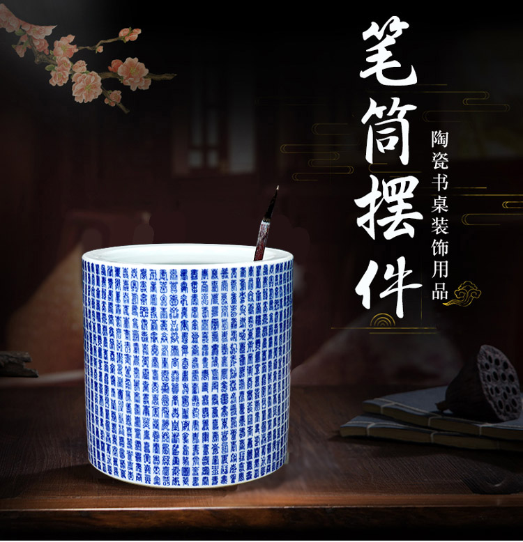 Jingdezhen ceramic blue and white porcelain desktop storage brush brush retro pen holder ornaments imitation Qianlong year pure handmade