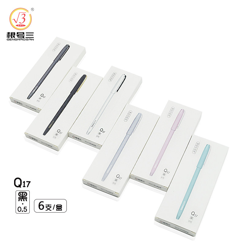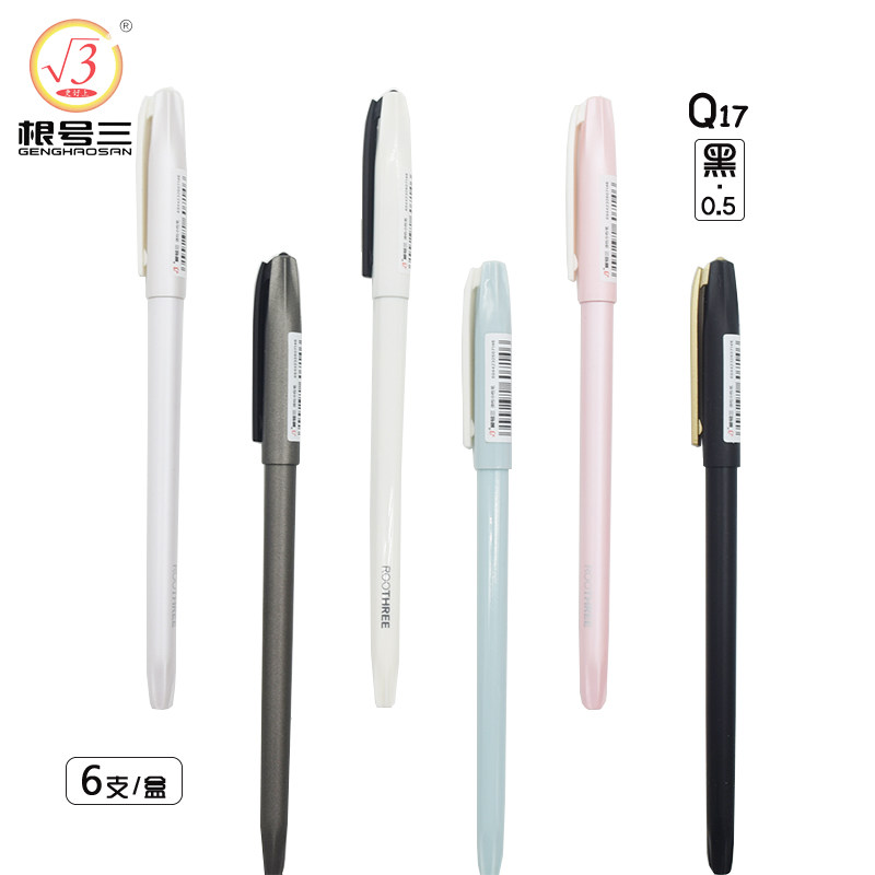 Root three elastic neutral pen Q17 6 - color 0 5mm test pen test field star anti - fatigue black substitute ink