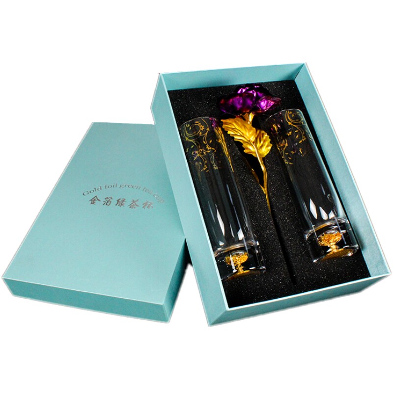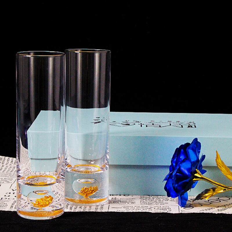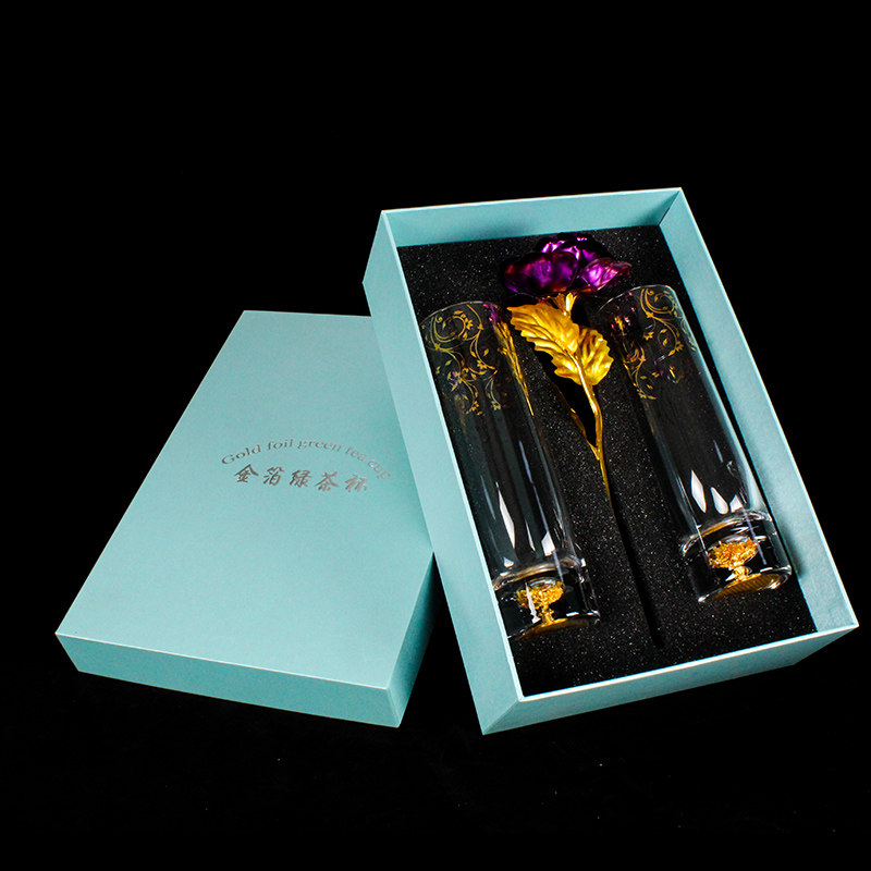 Crystal gold foil teacup double packing gift box gold foil green tea cup transparent straight cylinder gold cup tea cup