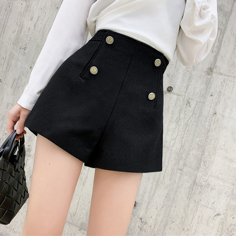 Black woolen shorts women's spring and autumn 2022 new high-waisted loose outer wear a-line all-match thin wide-leg boots pants