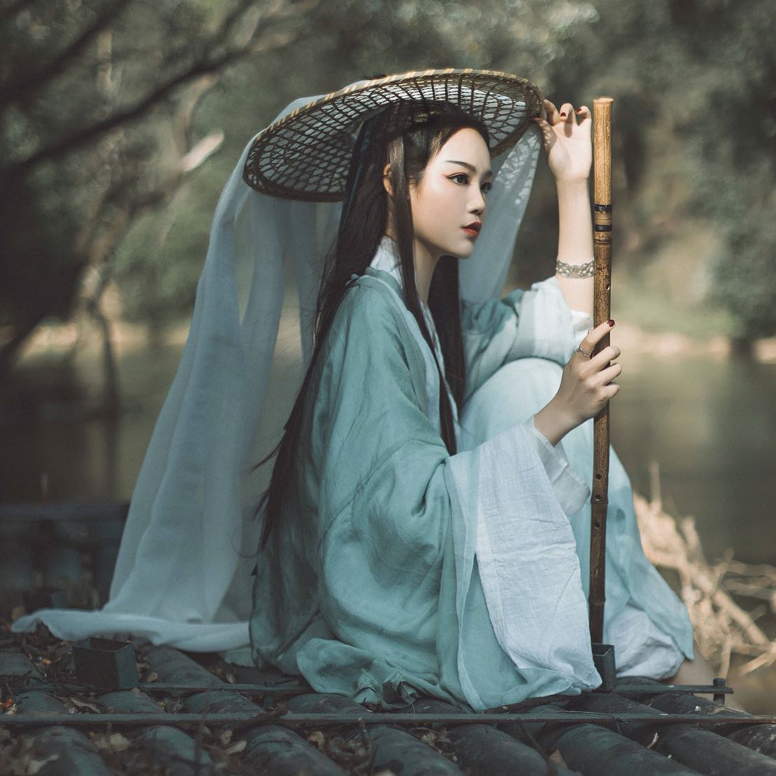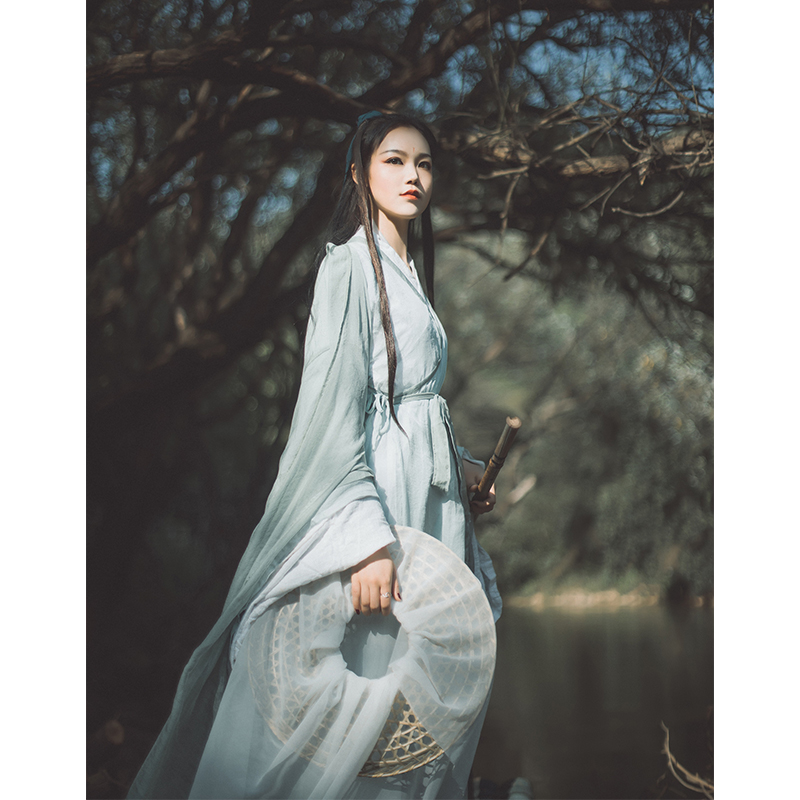 Qingping tune Wei Jin style Hanfu female ancient style martial arts guest green and elegant Chinese style ancient costume summer super fairy full set