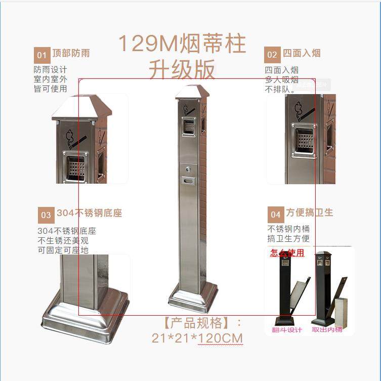 High End Stainless Steel Tobacco Ash Column Mall Public Smoking Area Smoke Bucket Outdoor Vertical Floor Tobacco Ash Bucket Cigarette
