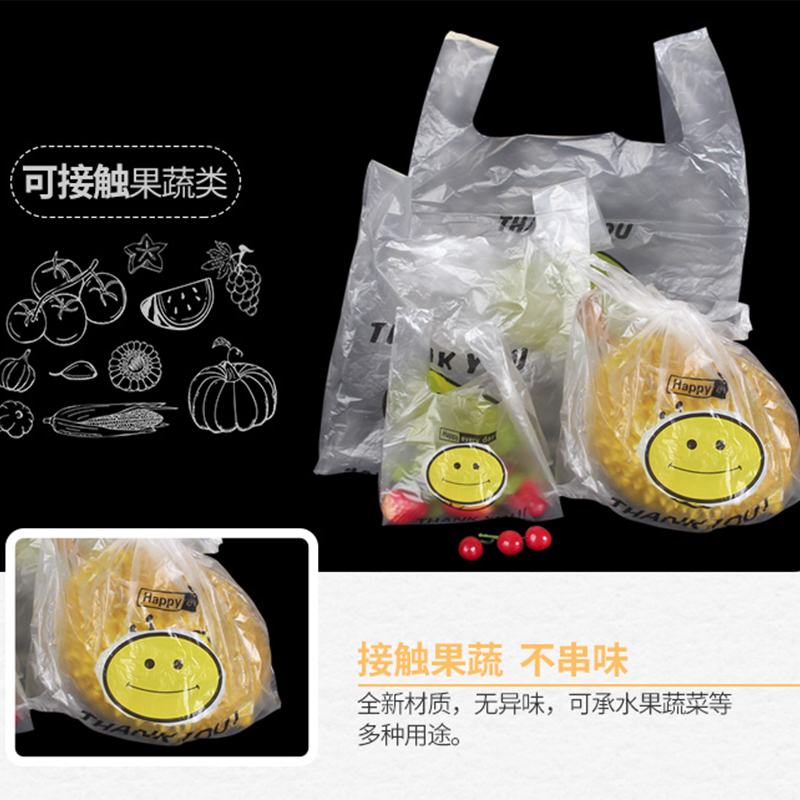 Smiley Face Plastic Bag Handbags Food Takeaway Packaging Disposable Bags Transparent Supermarket Shopping Packaging Convenience Bags