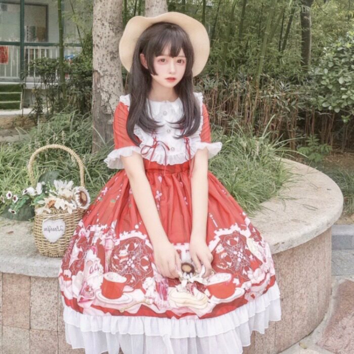 Han Mushrooms Cool {Spot} ~ Factory Original Design Day Series Soft Girl Lolita Lower afternoon tea time Ocean dress Sop dress