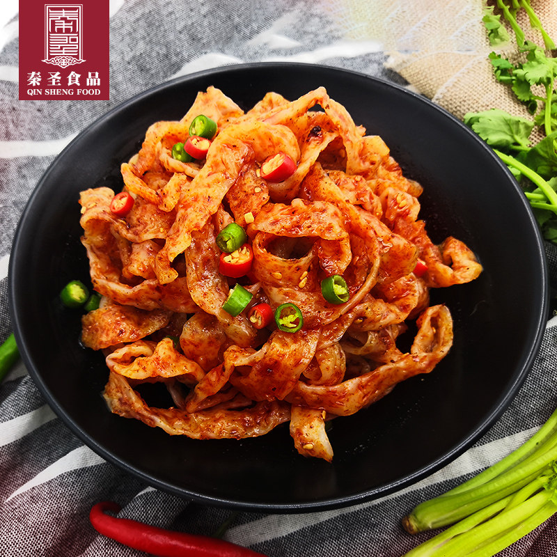 Qin Sheng beef noodles spicy strips handmade long gluten cold skin cold salad fast food Shaanxi specialty gourmet hand rolling noodle skin