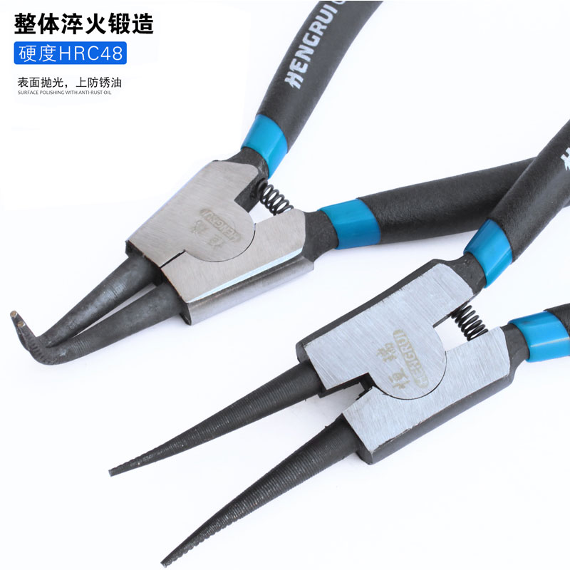7 inch circlip pliers (external straight)7 inch circlip pliers (internal straight)7 inch circlip pliers (external bending)7 inch circlip pliers (internal bending) 7 inch inner straight outside straight inside curved inside curved outside a total of 4 clamps Spring pliers (7 inch shaft straight