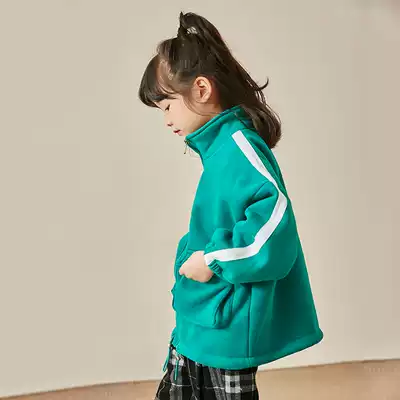 Pear small leisure girl 2020 Autumn New Korean version of foreign style thick cotton T jacket casual coat children's cardigan