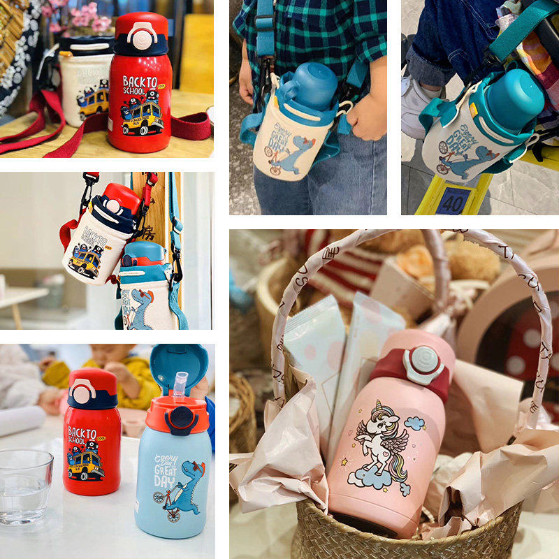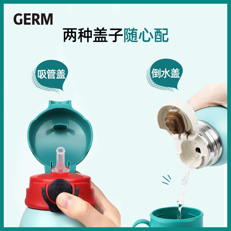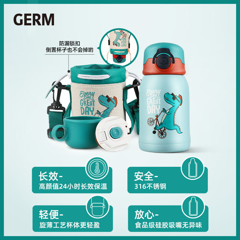 Japan GERM Children's thermos cup with straw dual-use 316 stainless steel baby oblique cross water cup kindergarten