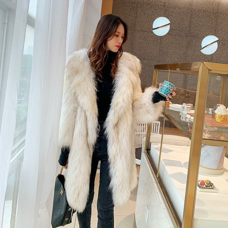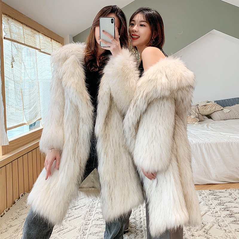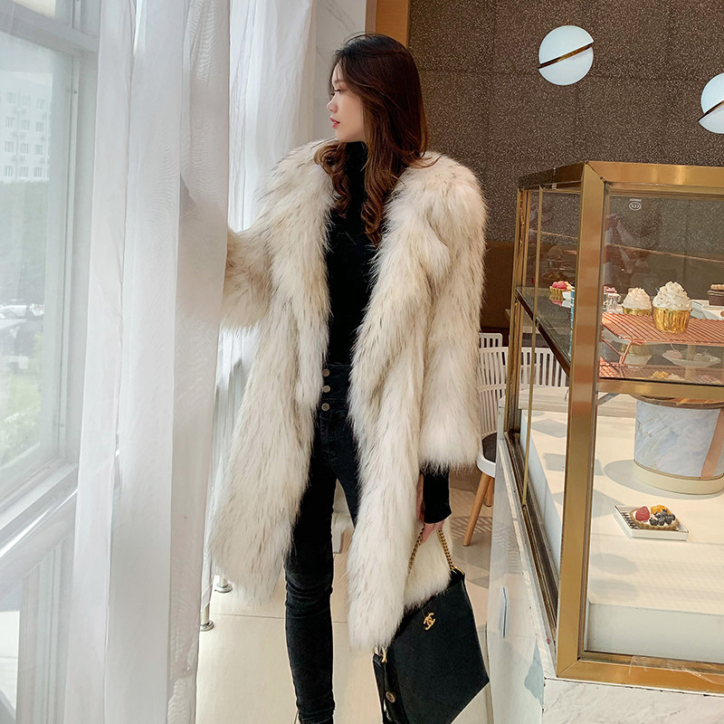 2023 new imported raccoon fur coat women's long moonlight color suit collar woven fur coat special price