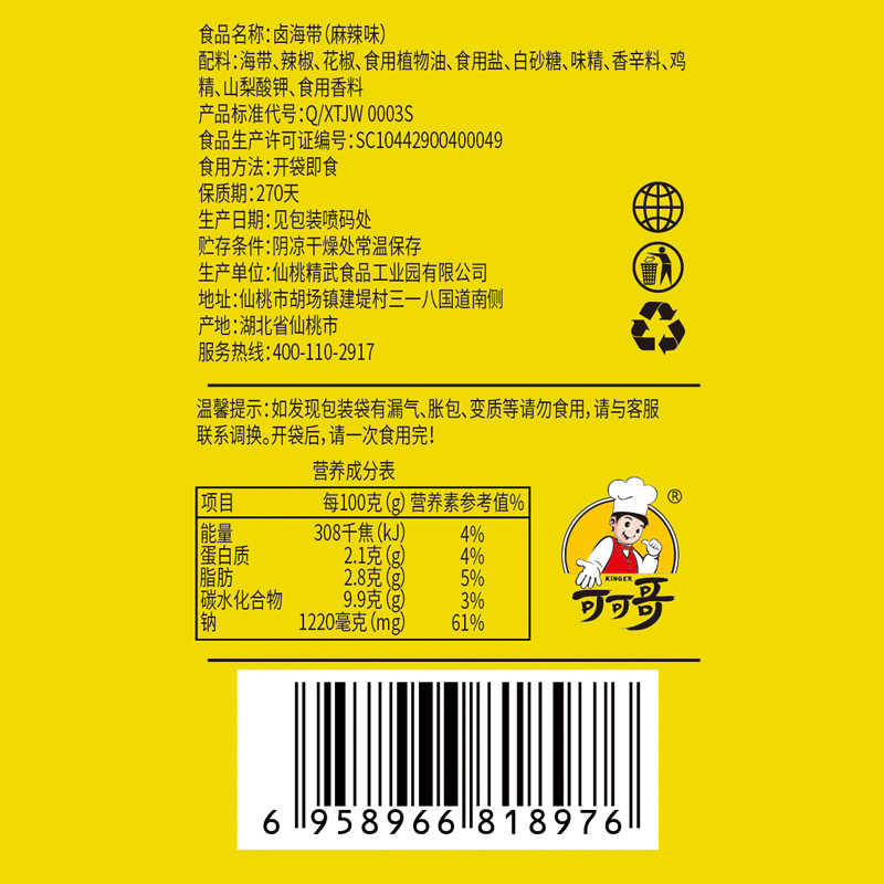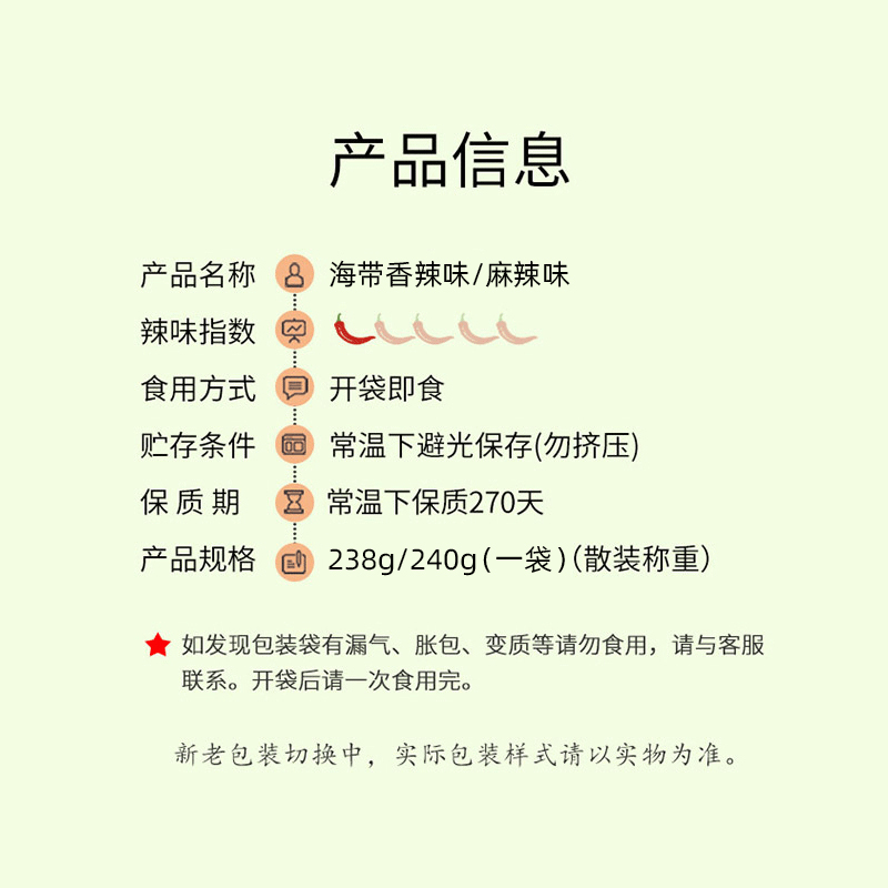 (Coupon 99-50)Jingwu Wuhan specialty spicy braised kelp 238g small package leisure snacks