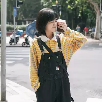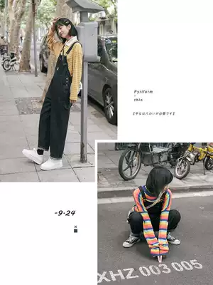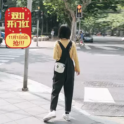 (Spot) loyal dog Small eight pear-shaped homemade-denim baby bag pants autumn black loose Korean version of Joker student h