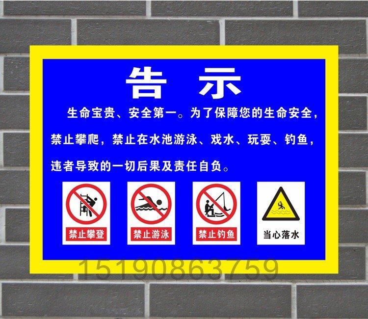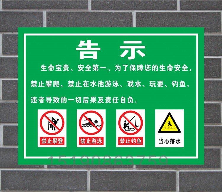 Fish pond water depth dangerous riverside pool reservoir sign warning warning no swimming fishing aluminum plate billboard