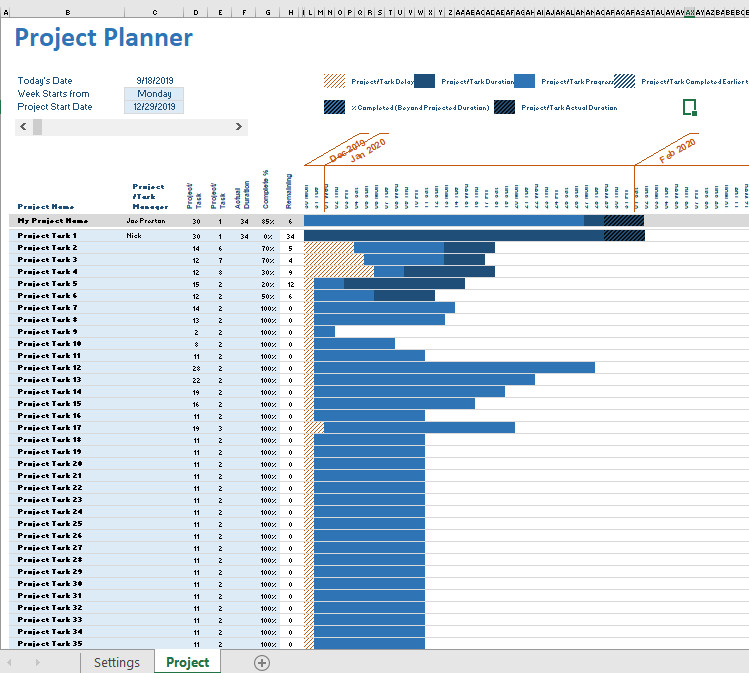 Excel Multiple Project trackinggantt Multi-task Tracking Gantt Chart Plan Table