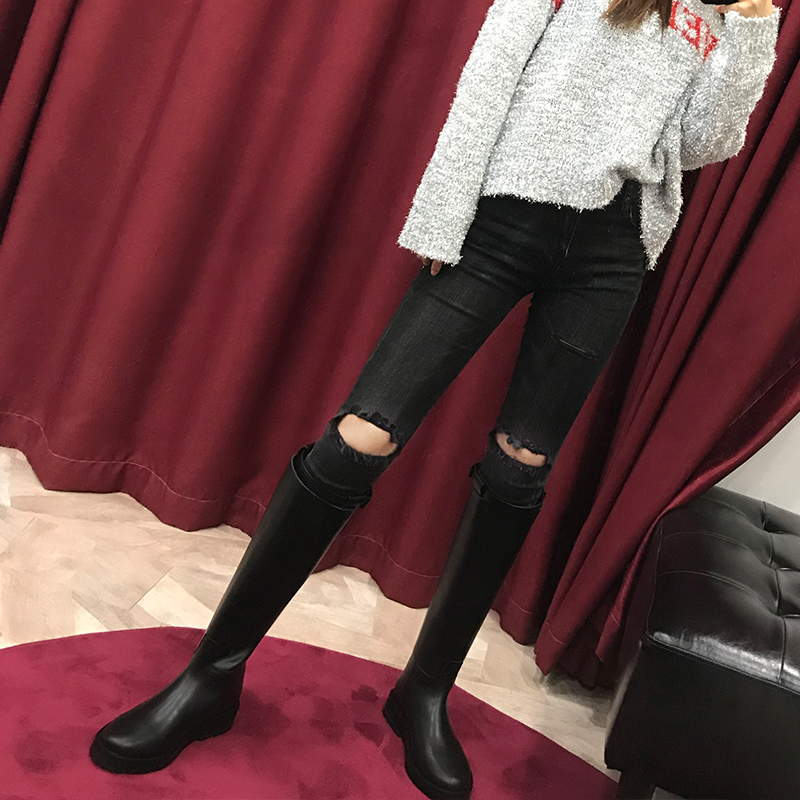 Full cow leather ~ ANN riding boots genuine leather flat bottom high cylinder boot net red length boots though kneecap boots long drum horse boots female leather boots