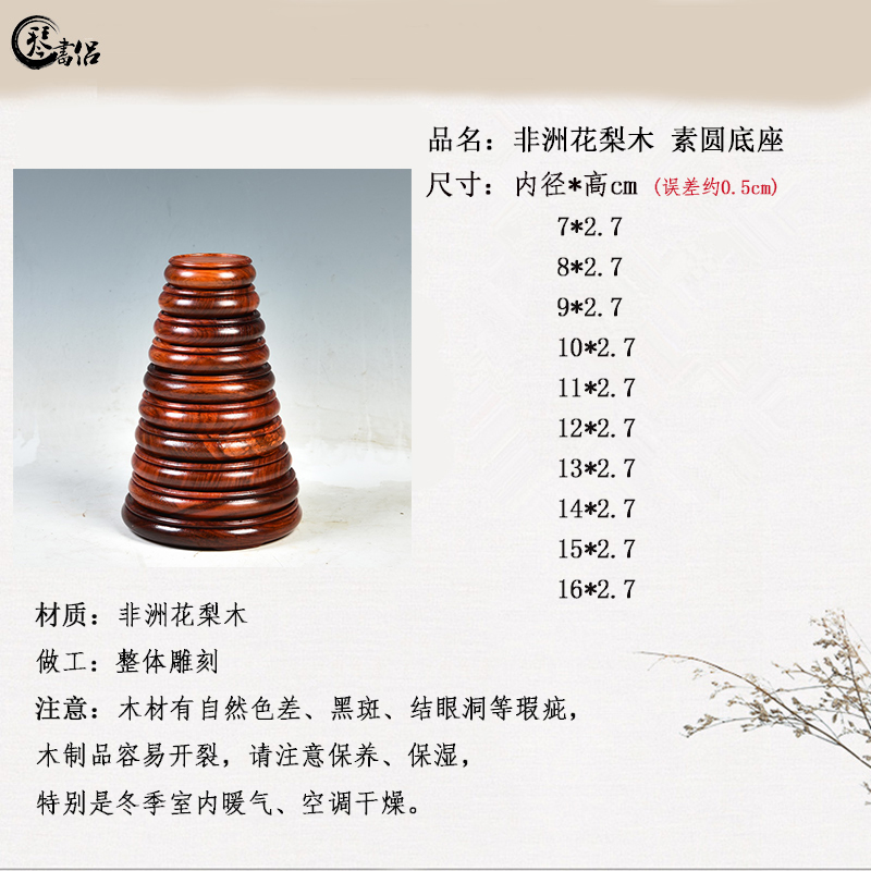 Red Wood Base Africa Flower Pear Wood Vegetarian Round Base Vase Base Purple Sand Pot Base Tea Cup Tea Set Base Mat