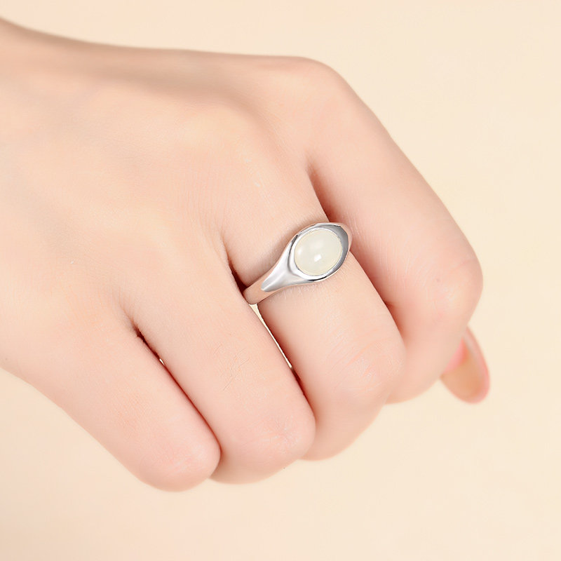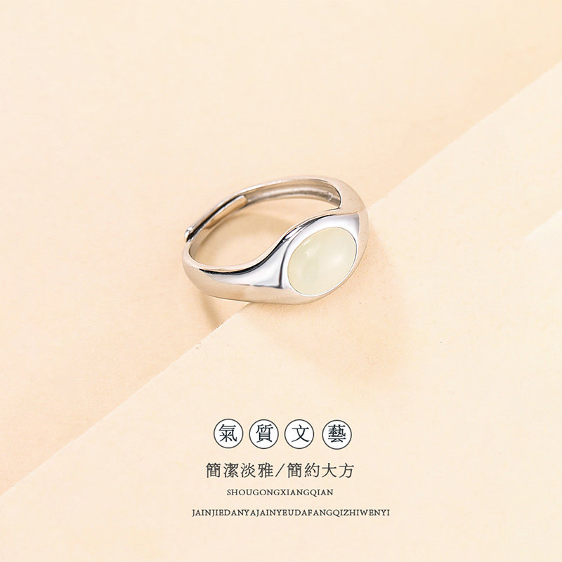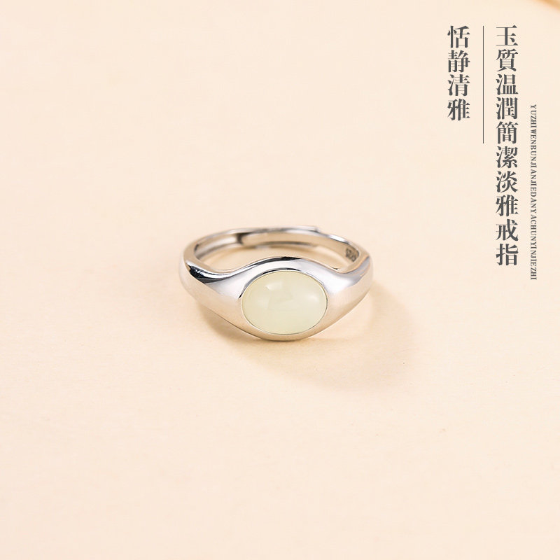925 silver jade ring female fashion brief index finger and field jade ring ins tide ring Korean version net red lukewarm wind-Taobao