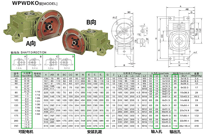 WPWDKO WPWDRO HORIZONTAL WORM WHEEL WORM ROD REDUCER GEARBOX INNOVATIVE IRON SHELL MOTOR