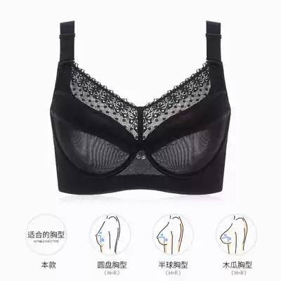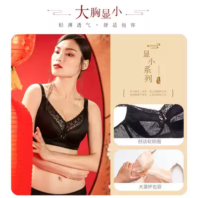 Moonlight big chest small bra thin Full Cup with steel ring anti-sagging large size underwear female fat mm receiving milk