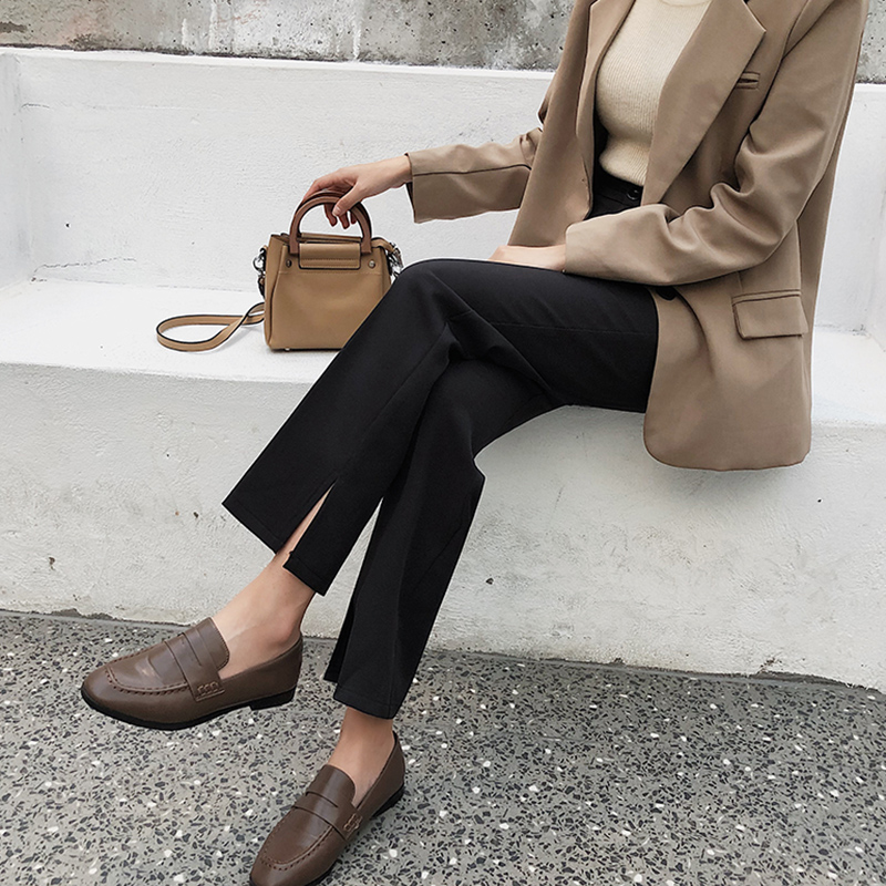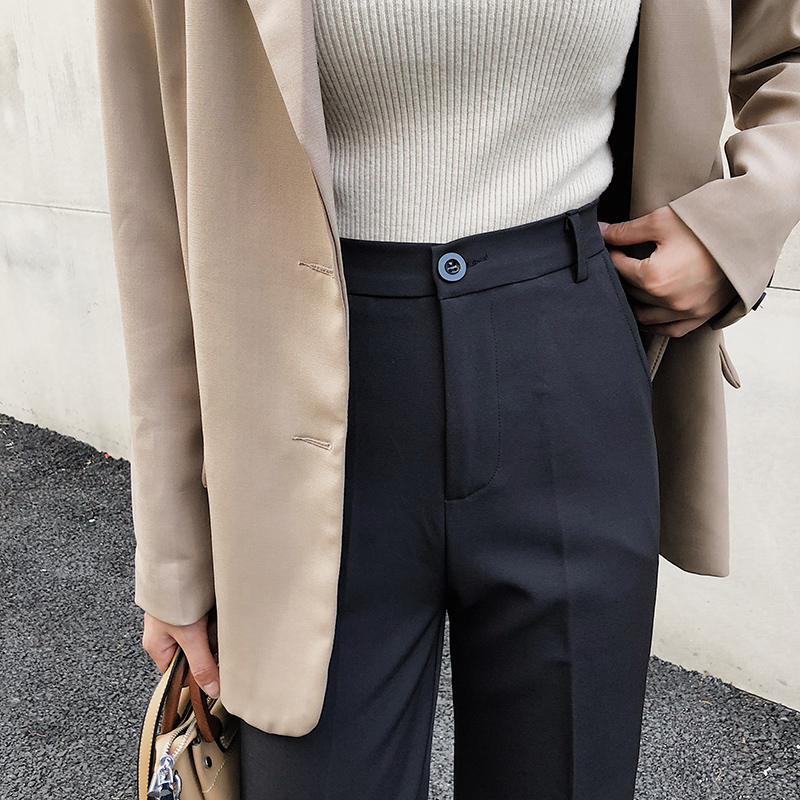 Joker high waist slim trouser leg split loose hanging feeling straight tube nine-point suit pants children 2021 autumn new