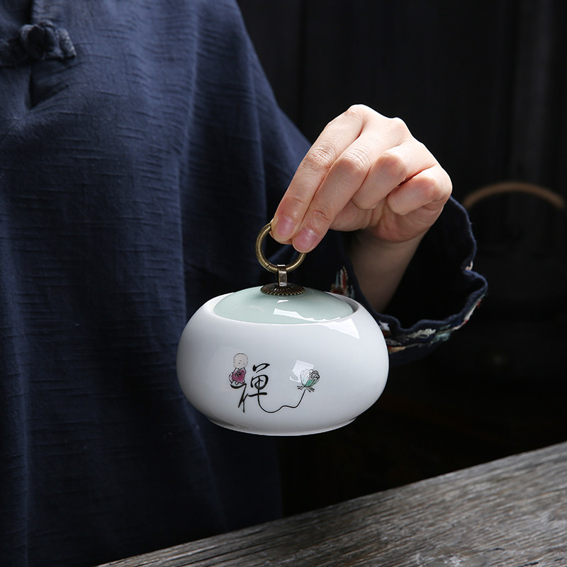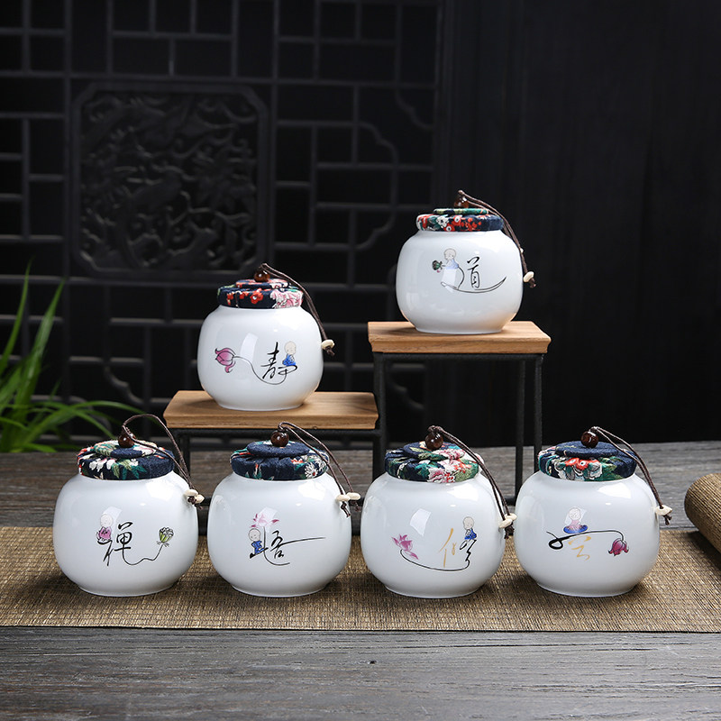 Mini meditation channel net white round tea cans ceramic white porcelain sealed cans dry fruit storage tank