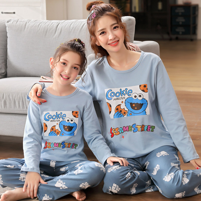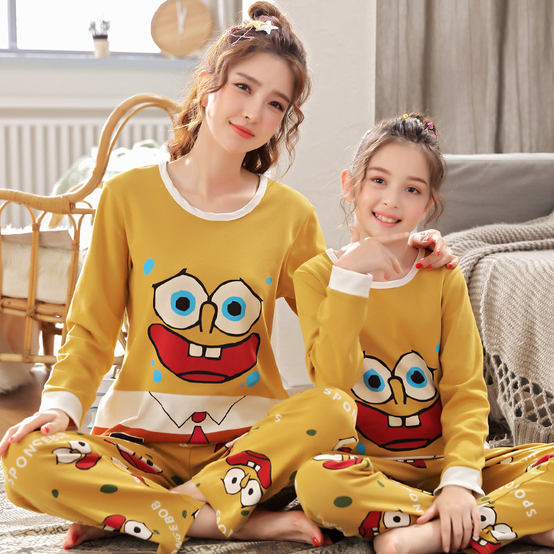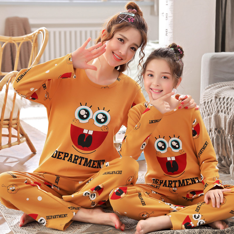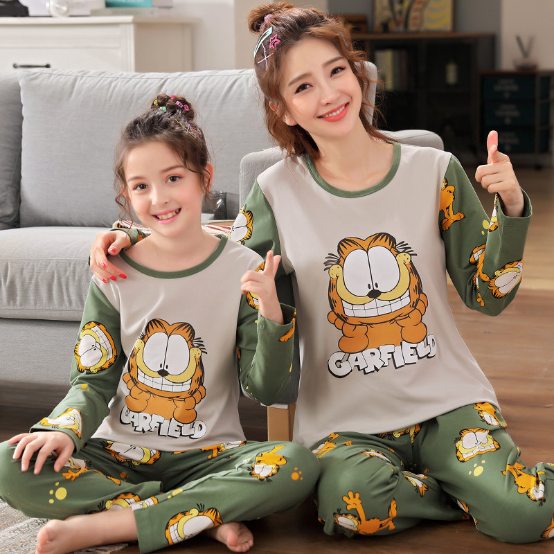 Girls pajamas spring and autumn pure cotton suit cartoon long-sleeved children's baby mother and daughter home clothes cotton parent-child pajamas