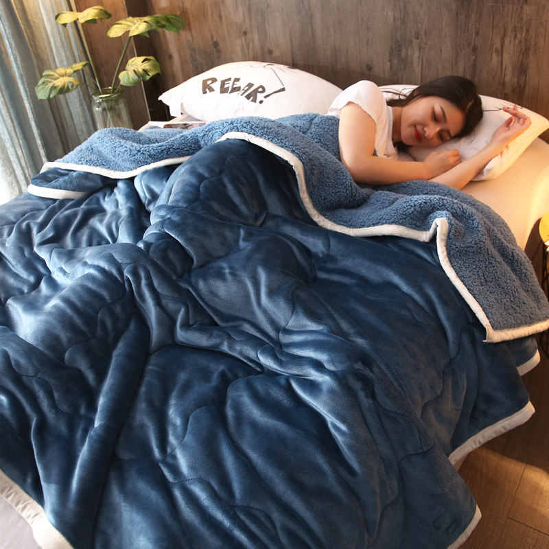 Thickened Warm Blanket Quilt Coral Suede Blanket Son Fallan Suede Autumn Winter Double Office Bifacial Suede Nap Blanket