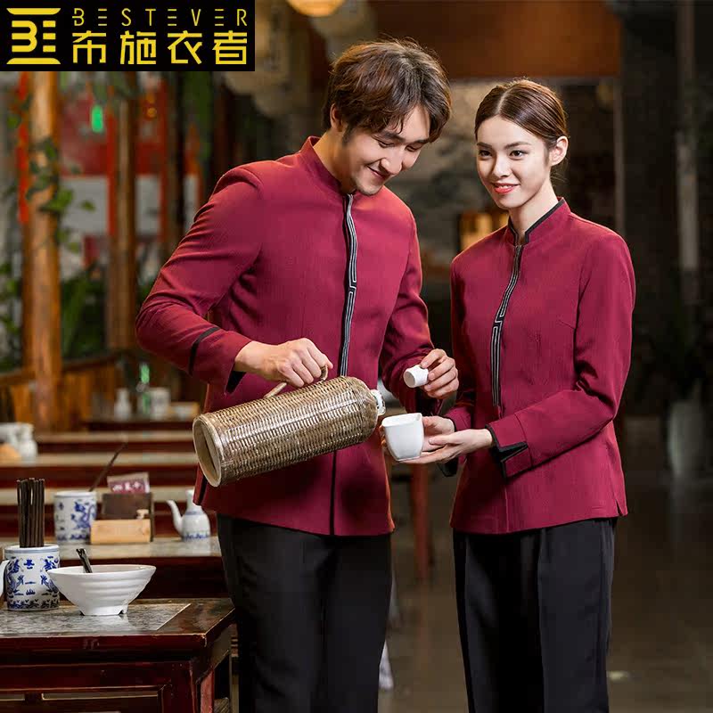 Clothier Hotel waiter overalls Long sleeves Chinese restaurant teahouse clothing Casual farm staff autumn and winter clothing