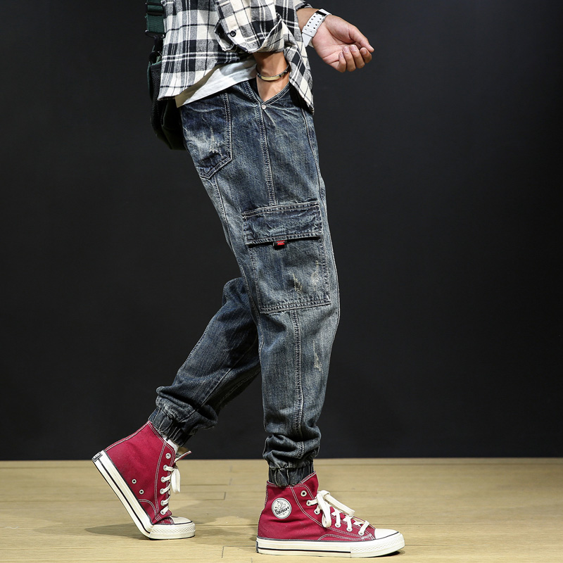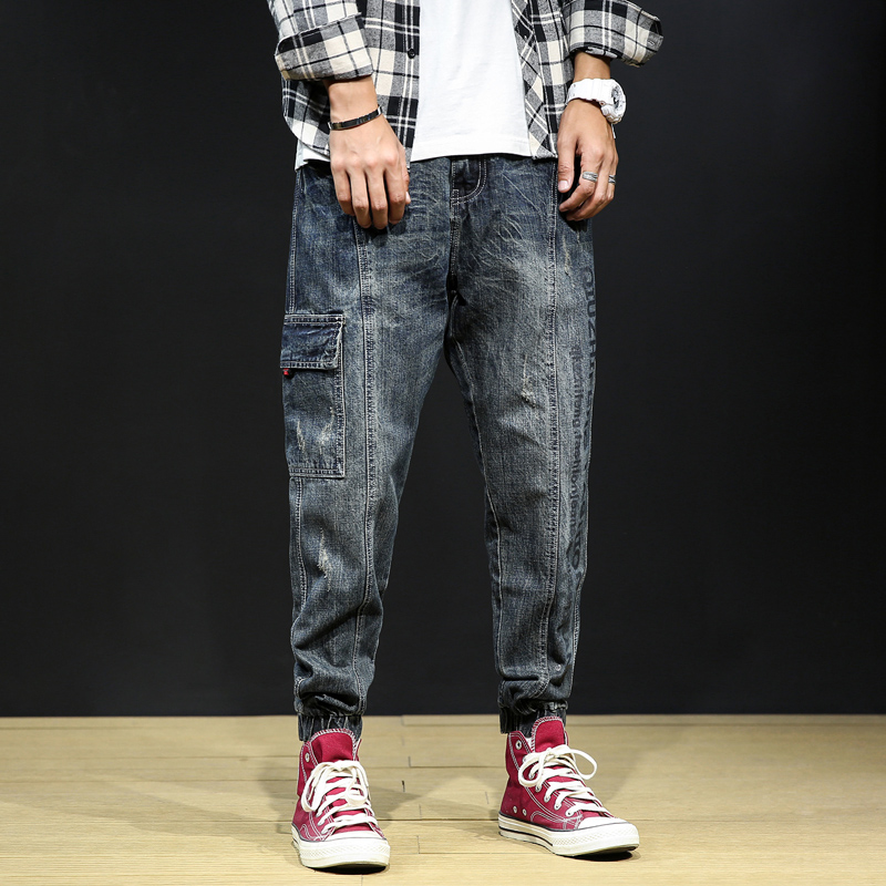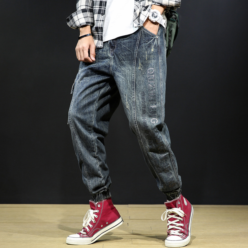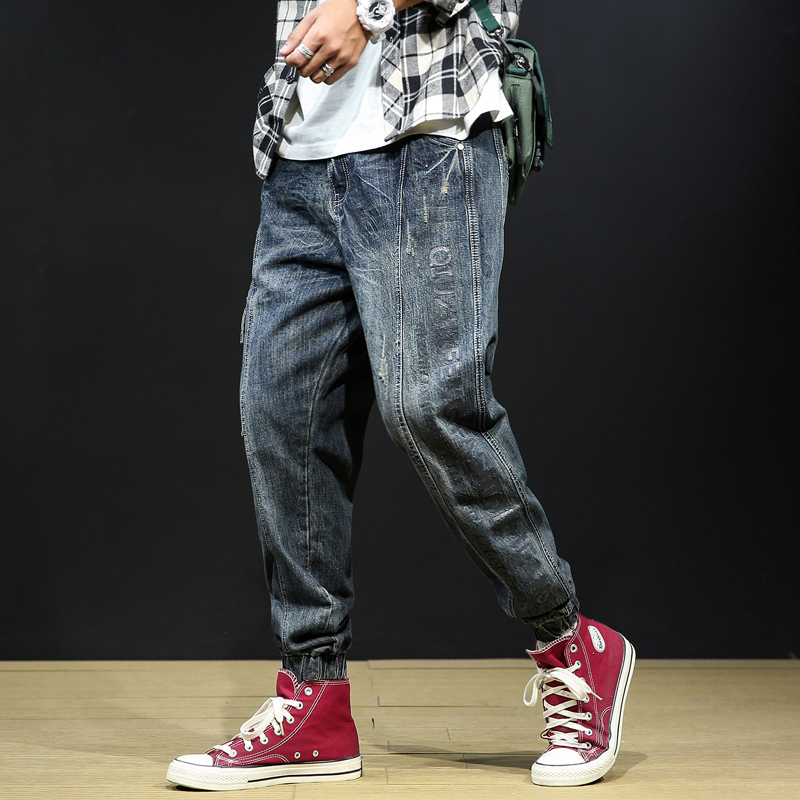 Tide brand jeans men loose Japanese retro spring and autumn pants large size Harun drawstring pants tide autumn 2020 new