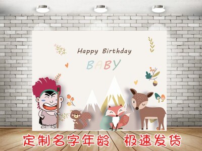 Baby hundred-day banquet layout decoration background wall jungle theme birthday dessert table background Indian forest animals