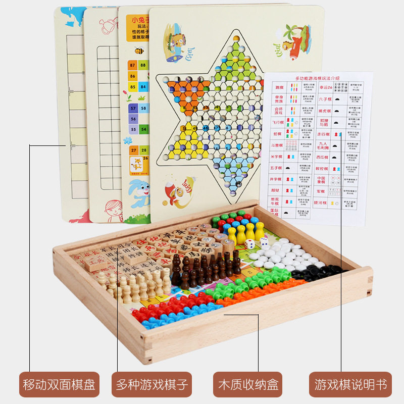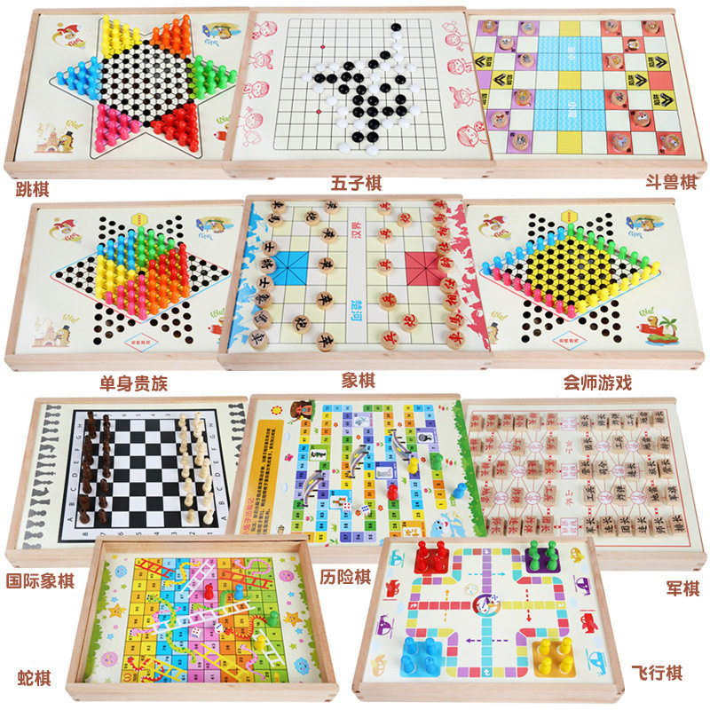 Flying Chess Checkers Wooden Multifunction All-in-one Game Chess Children's Fighting Chess Adult Puzzle Chess