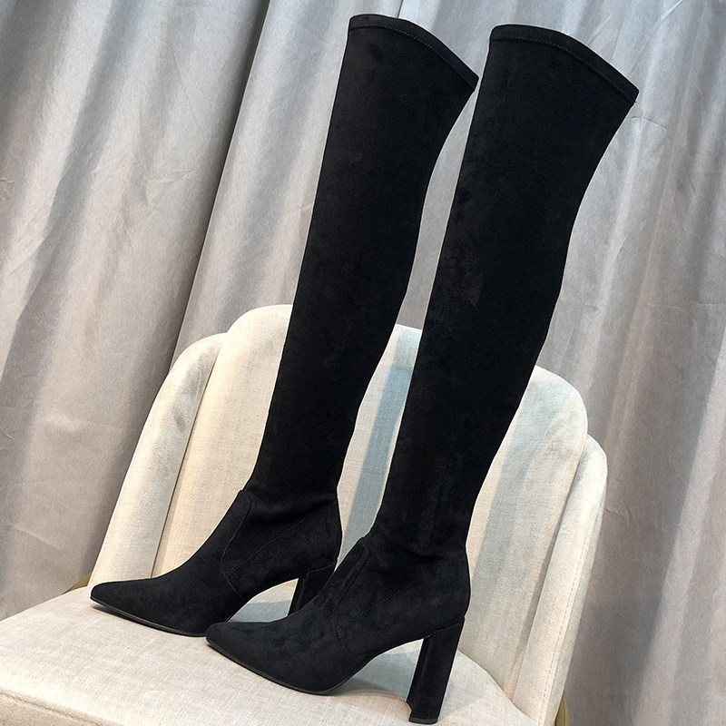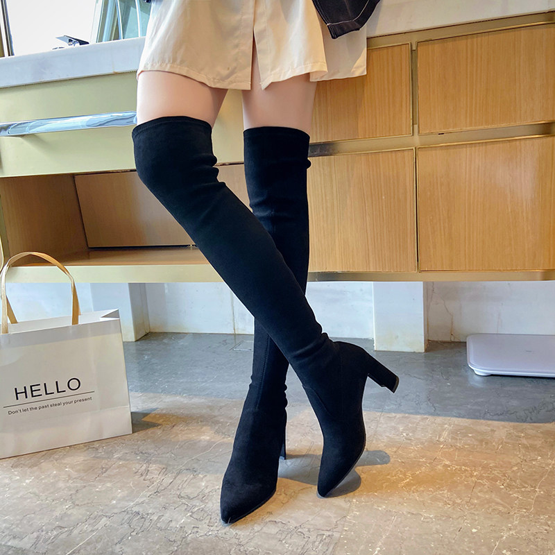 High-heeled boots Women's 2020 Over-the-knee boots Over-the-knee boots Pointed thick-heeled boots Stretch boots Skinny boots High boots