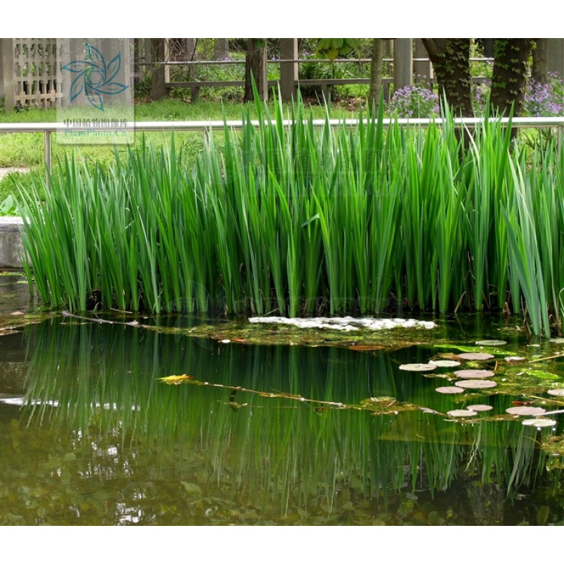Outdoor aquatic hydropond plant seedling and grass of the green plant of the pot, sword hydropond, purified grass