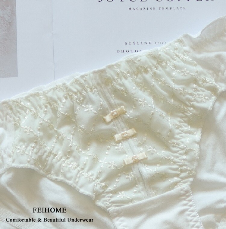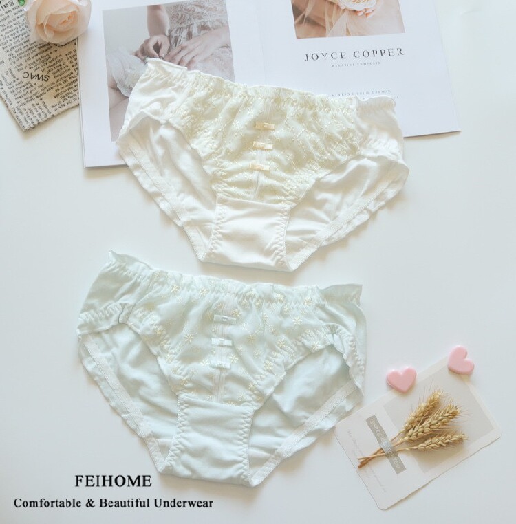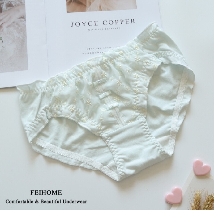 N510 Comfortable Ladies Mid-Low Waist Pure Cotton Fresh Small Bow Embroidery Student Shorts Girls Panties M L XL