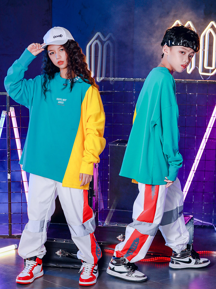 Children's Street Dance Suit Boy Hip Hop Handsome Qi Boomer Girls Loose Hiphop Jazz Dance Costumes
