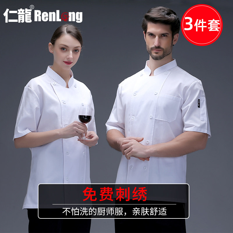 Kitchen chef overalls Male chef suit Short sleeve summer breathable summer dress Long sleeve high-end chef hotel catering