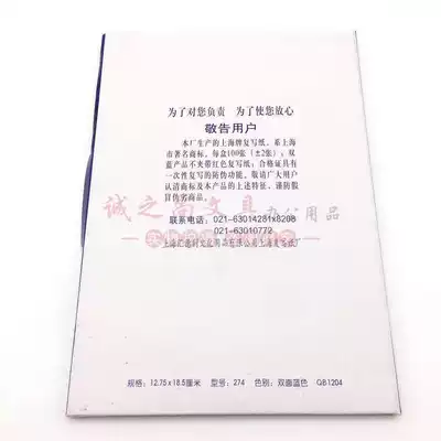Shanghai brand carbon paper 274 carbon paper blue printing paper 32K double-sided blue carbon paper 127 5 x185mm