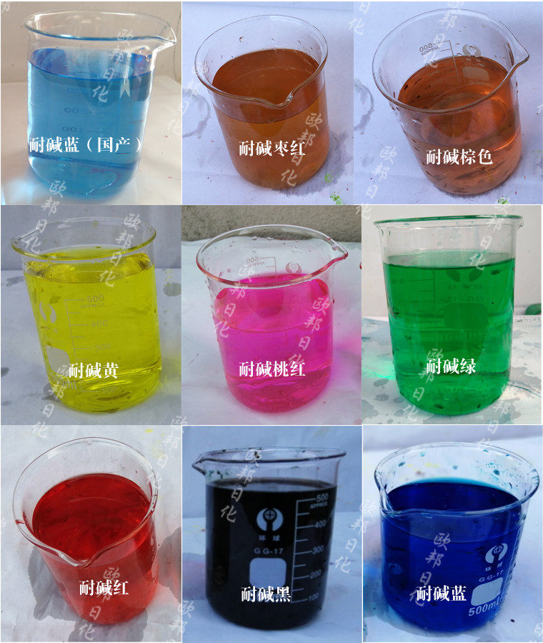 Alkali-resistant red, alkali-resistant yellow, alkali-resistant, acid-resistant blue, alkali-resistant jujube red, alkali-resistant brown, alkali-resistant pink, alkali-resistant black, alkali-resistant green, alkali-resistant blue (domestic)