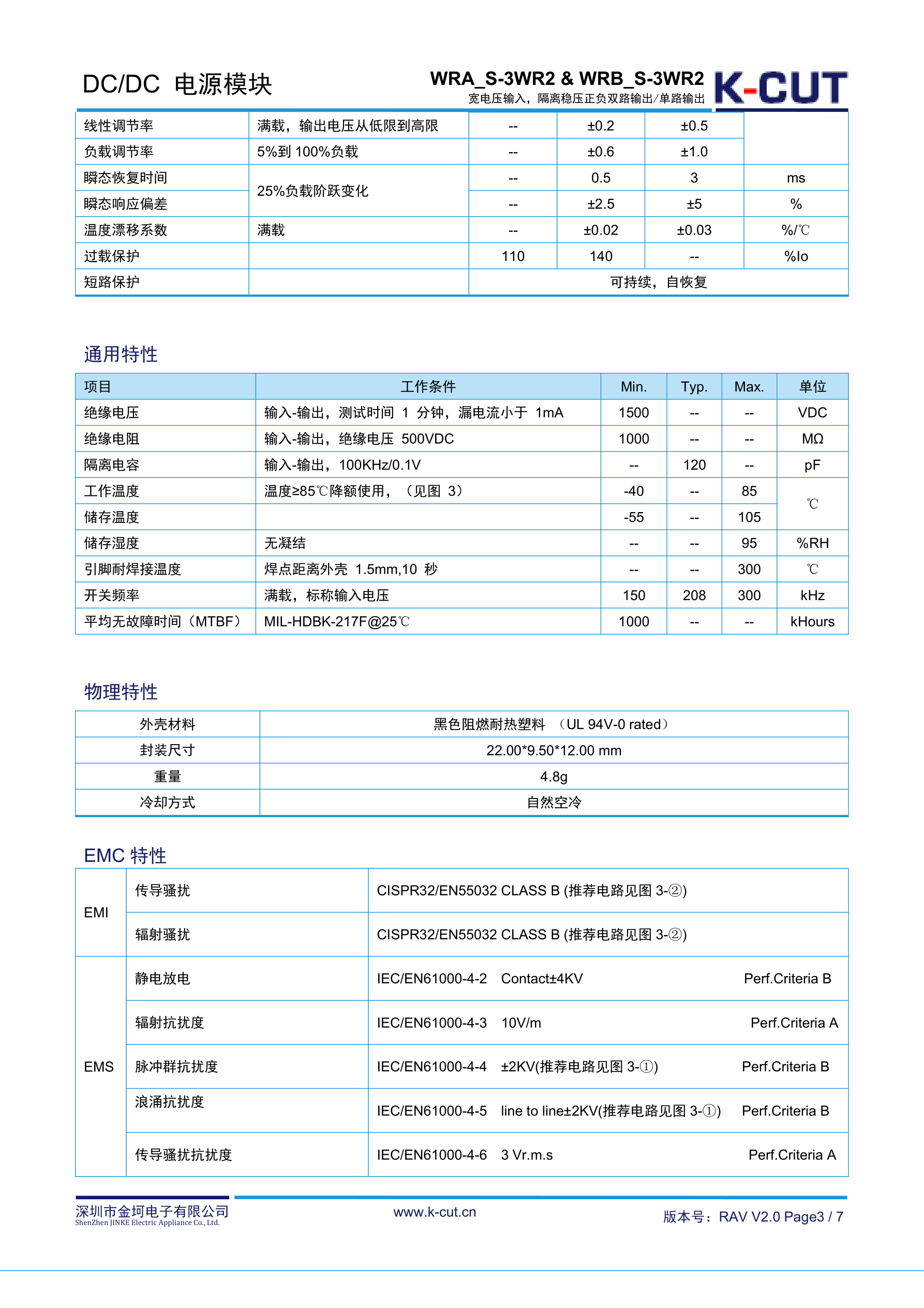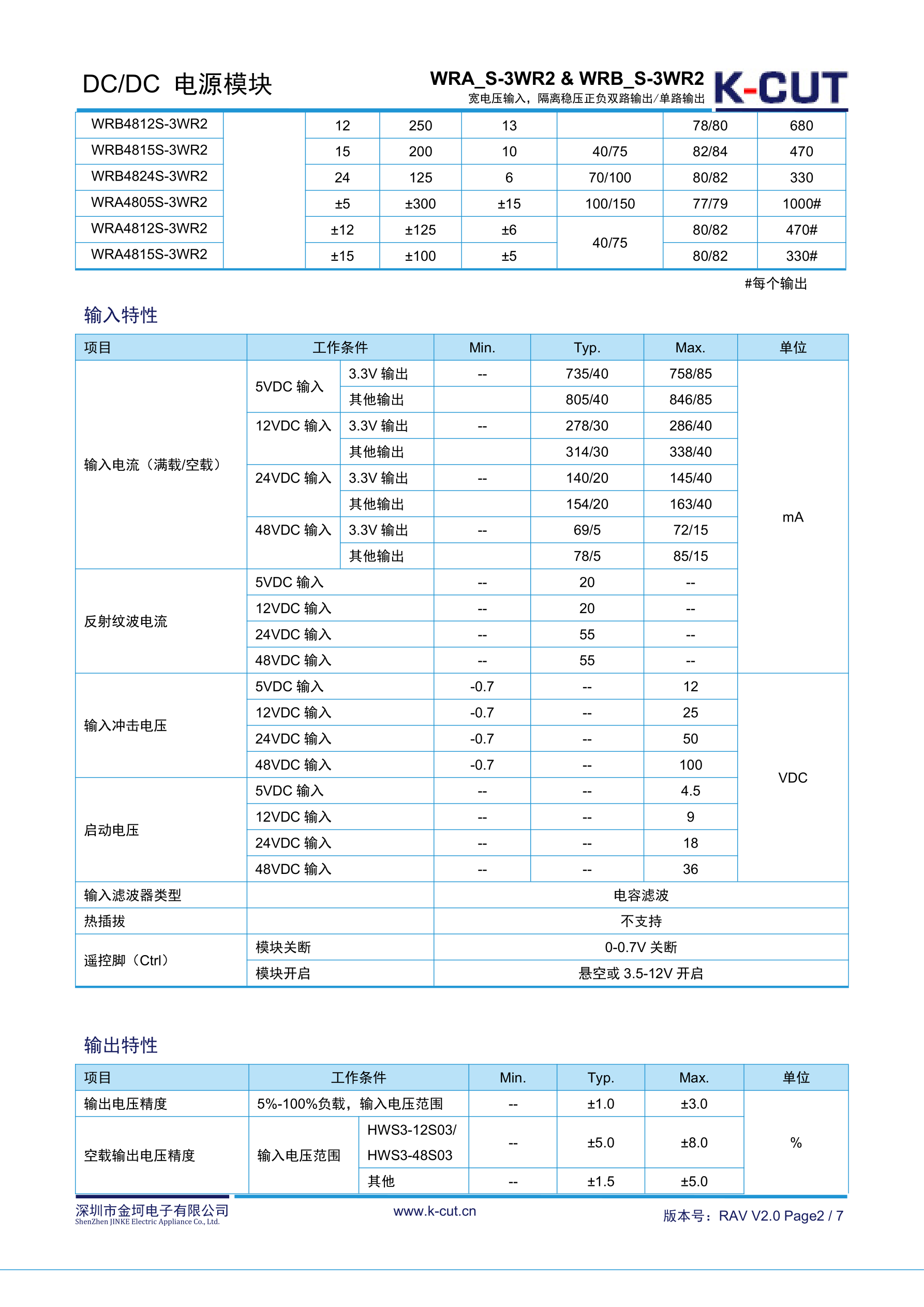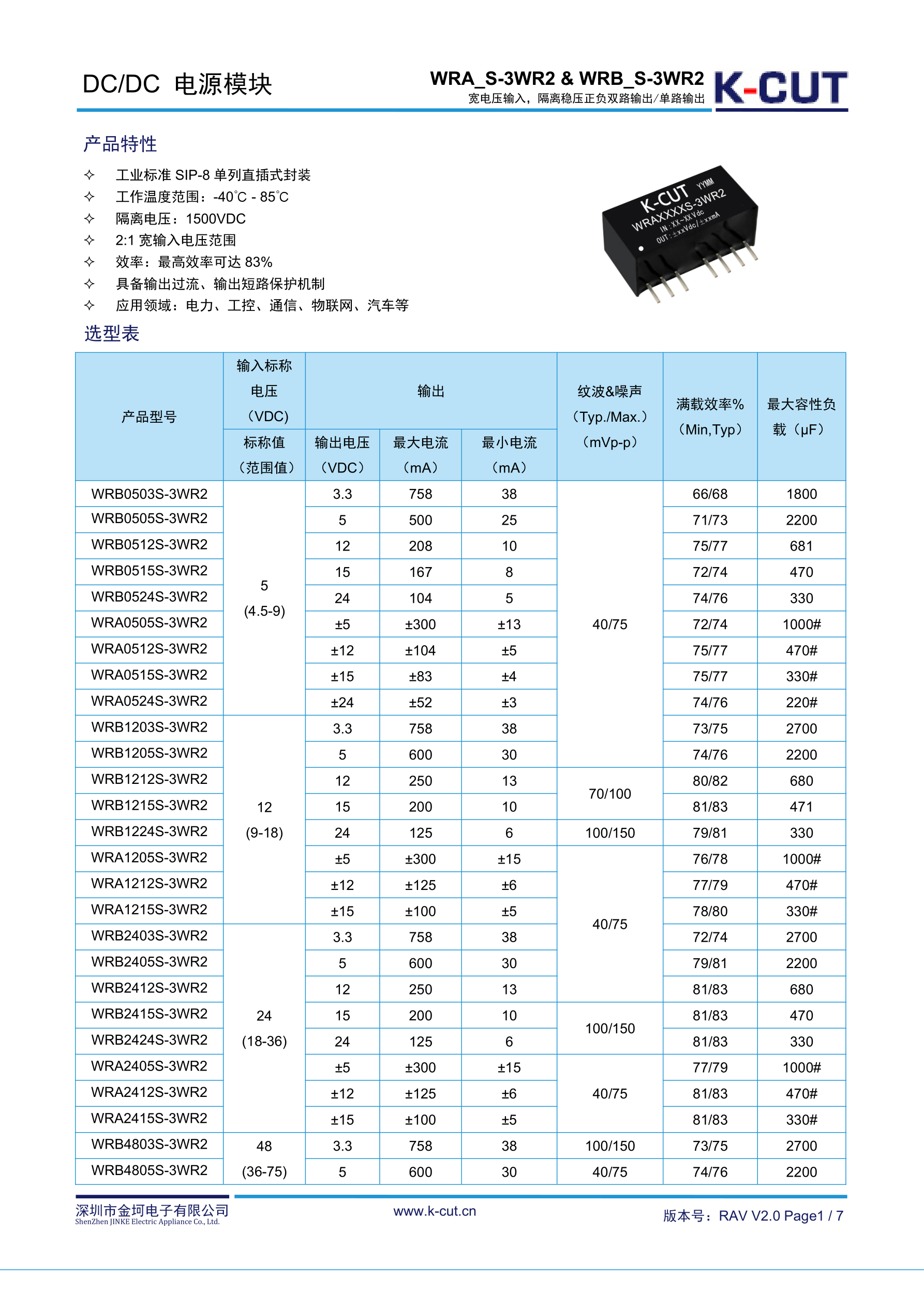 WRA0505S-3WR2 WRA0505S-3WR2 WRA0503 0509 0512 0515 0524S-3WR2 KCUT Power Supply