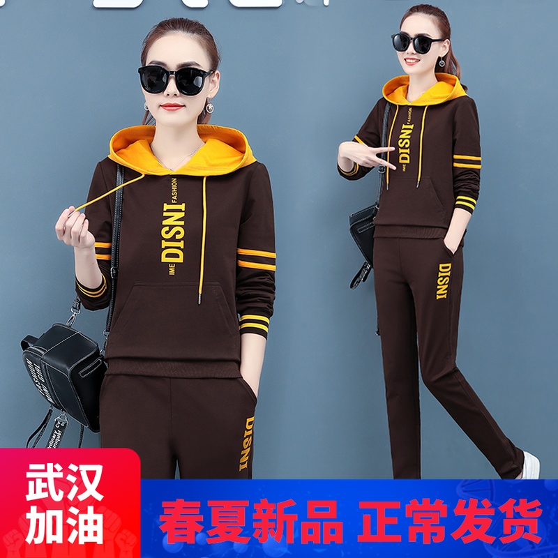 Casual sports suit women's spring and autumn 2022 new fashion Korean version loose and thin sweater hooded large size two-piece set