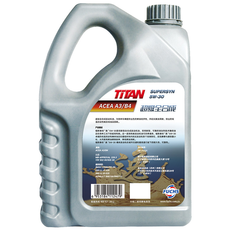 Foss Titan Yi 5w-30 4L ACEA A3 B4 super fully synthetic car oil Asian american, Japanese and Korean cars