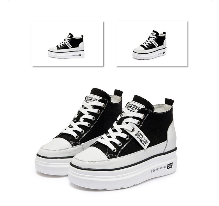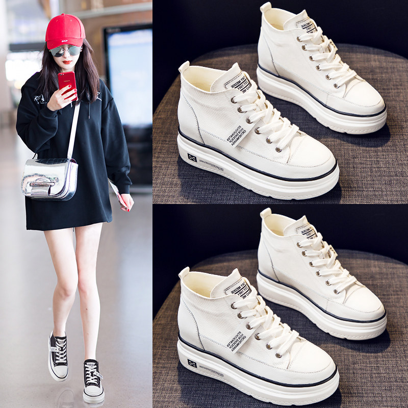 Hong Kong high-top canvas shoes thick-soled women's shoes inner height increase all-match muffin all-match short boots 2023 spring and autumn new trendy boots