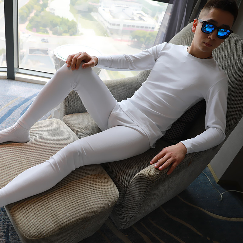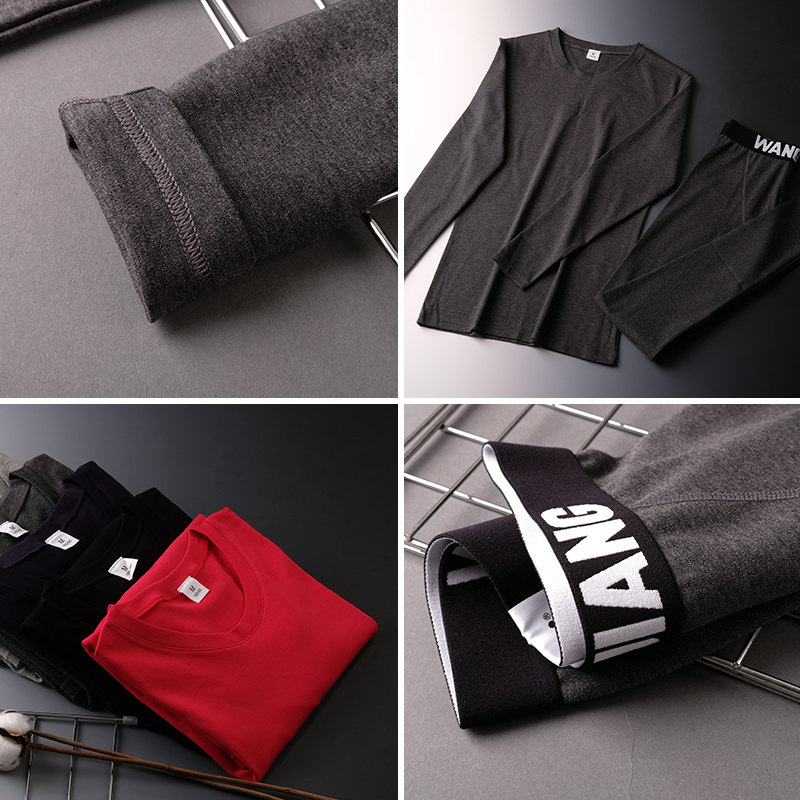 Men's autumn clothes, sanitary pants, thin youth pure cotton base, heating clothes, spring and autumn suits, trendy slim round neck