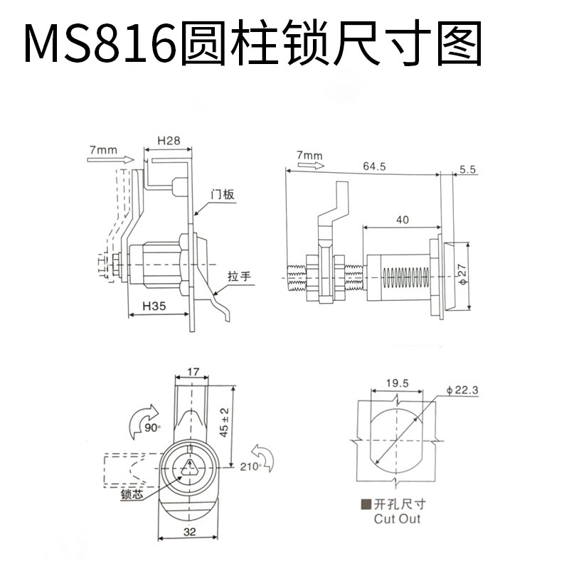 Zhuoguan MS816 triangle lock telescopic tongue lock compression type power distribution box lock power distribution cabinet door lock trash box lock